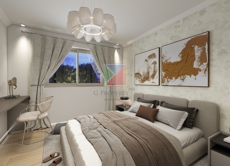 A modern, newly built Class A energy-efficient apartment is available for sale, with a total area of 99 sq.m. gross / 83.21 sq.m. net, located on the 1st floor of a building with an elevator in the Dionysos area of Thermi. The apartment is front-facing, bright, and situated on a quiet, privileged street in a boutique building of only 5 apartments.